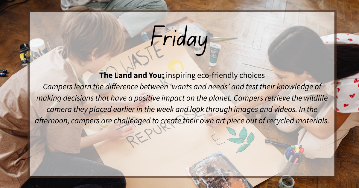 We will accept a maximum of 15 campers each week, to ensure safety and adequate supervision.